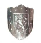 This classic Heraldic Shield was crafted in Spain and displays a deep embossed Lion Design. It is complete with hanging wire on the back and can be combined with swords or axes of the ear for a unique, historically accurate, and attractive display. It is an authentic replica of the shields crafted by medieval knights to identify themselves and their lineage to others. It is made of heavy (18 gauge) steel and is designed to endure, just like the original.